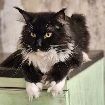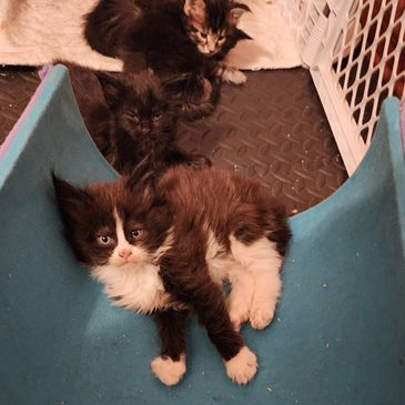 We have two tuxedo kittens available. One polydactyl male one straight foot female.