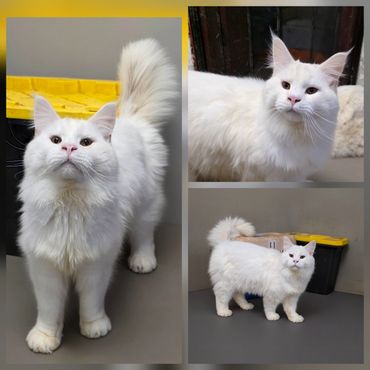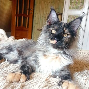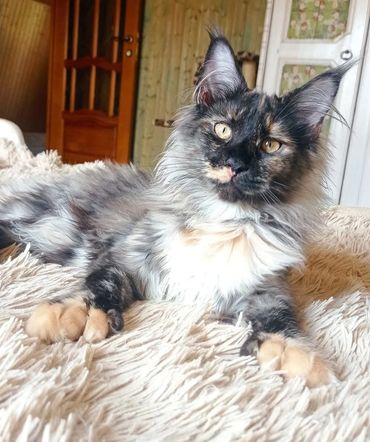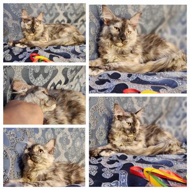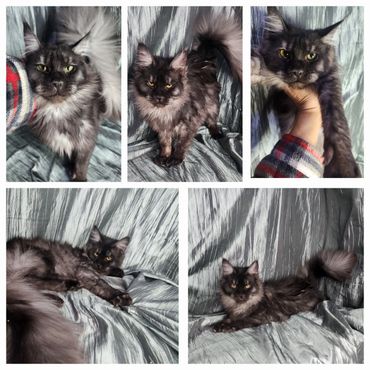 Check out our latest litter of fluffy and adorable Maine Coon kittens in a variety of colors, including black, red, cream red smoke, and white.
